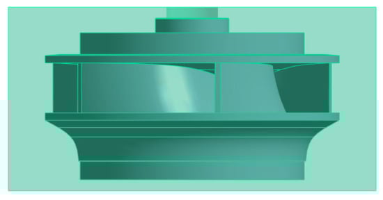 The given boundary condition for the computation of the flow field involves the intake, which is determined by the mass flow rate. On the other hand, the exit condition for the volute is defined by setting the mean static pressure to zero. By employing CFD analysis to evaluate the entire flow channel, a more precise internal flow field may be computed. This enhanced accuracy facilitates the determination of blade surface pressure loads, which in turn contributes to more accurate calculations in the subsequent structural field analysis [,,]. The focus of the structural field calculation is on an individual impeller within a centrifugal pump. Since stress concentration often occurs in the root region, the impeller modeling of the blade and the impeller before and after the cover plate of the transition between the rounded corners of the impeller is also accurately simulated, and in this sensitive area of the mesh refinement, to avoid the calculation process due to the mesh division of the cause of the stress concentration phenomenon that should not be generated [].