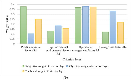 Index weight diagram of the P01739 pipe section. (a) Weight of the index layer. (b) Weight of the criterion layer.