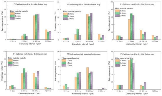 Figure 5. Distribution of sediment particle size in the filter layer under the same filter material particle conditions.