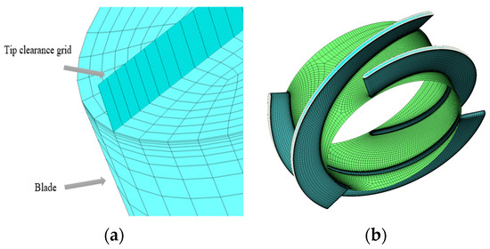 Mesh generation. (a) Local impeller mesh; (b) Impeller mesh.