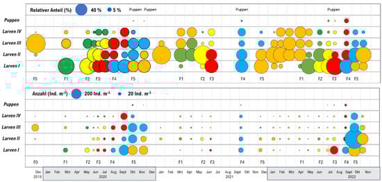 −3 of water; however, in late summer, abundance increased up to 6.350 larvae per m