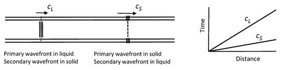 Attention now turns to the consequences of Poisson’s Ratio effects in pipe walls, and linearly elastic behaviour is again assumed. In the event of a sudden disturbance to the flow, e.g., valve closure, the change in the internal pressure causes a change in the circumferential stress in the pipe wall and, hence, also causes a change in the axial stress in the wall. This change propagates axially in the wall at the speed of sound in the solid material. Typically, as illustrated in Figure 5, it travels much faster than the pressure wave in the fluid. In turn, the Poisson’s Ratio effects at the axial-stress wavefront cause a change in the circumferential stress that changes the pipe diameter and, hence, induces a pressure change in the fluid. This form of fluid–structure interaction (FSI) is an example of a dispersive process that is not necessarily dissipative (at least, not strongly so).