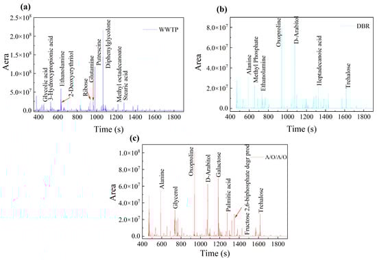 Metabolite analysis in WWTP (a); DBR (b); and A/O/A/O (c) systems.