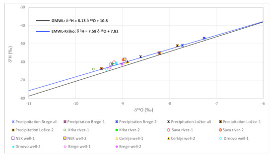 - Ogrinc, N.; Kocman, D.; Miljevi, N.; Vre, P.; Vrzel, J.; Povinec, P. Distribution of H and O Stable Isotopes in the Surface Waters of the Sava River, the Major Tributary of the Danube River. J. Hydrol. 2018, 565, 365–373. [Google Scholar] [CrossRef]