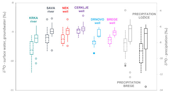 - Nagode, K.; Kanduč, T.; Lojen, S.; Železnik, B.B.; Jamnik, B.; Vreča, P. Synthesis of Past Isotope Hydrology Investigations in the Area of Ljubljana, Slovenia. Geologija 2020, 63, 261–270. [Google Scholar] [CrossRef]