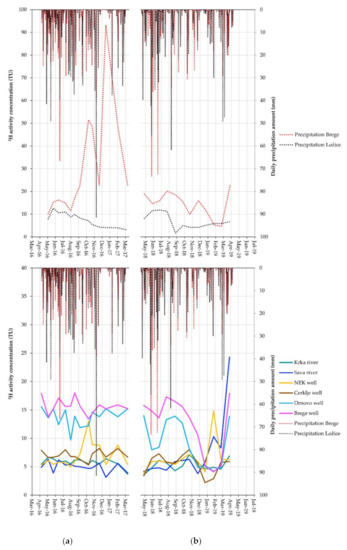 - Hebert, D. Technogenic Tritium in Central European Precipitations. Isot. Isot. Environ. Heal. Stud. 1990, 26, 592–595. [Google Scholar] [CrossRef]