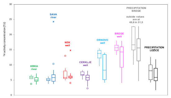 | 3H activity concentration (TU) | Krka river | 5.9/5.0 | 5.4/3.6 | 6.7/7.1 |