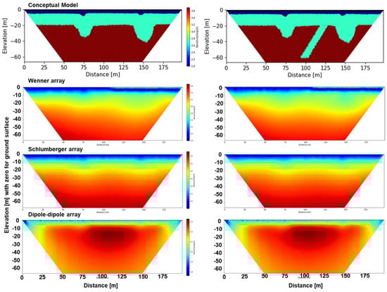 - Loke, M.H.; Acworth, I.; Dahlin, T. A comparison of smooth and blocky inversion methods in 2D electrical imaging surveys. Explor. Geophys. 2003, 34, 182–187. [Google Scholar] [CrossRef]