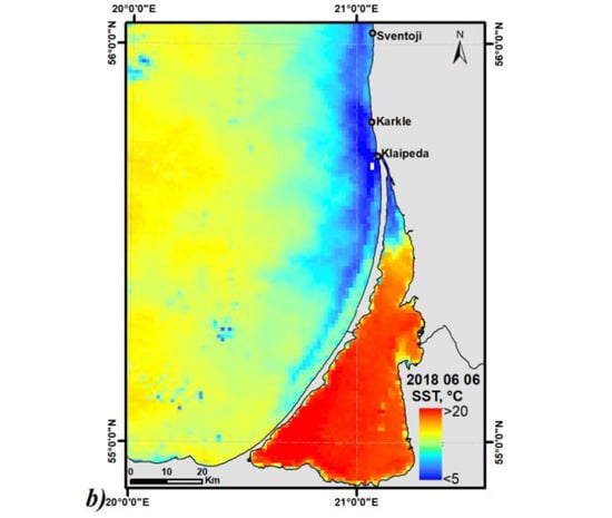 - Dabuleviciene, T.; Kozlov, I.E.; Vaiciute, D.; Dailidiene, I. Remote Sensing of Coastal Upwelling in the South-Eastern Baltic Sea: Statistical Properties and Implications for the Coastal Environment. Remote Sens. 2018, 10, 1752. [Google Scholar] [CrossRef]