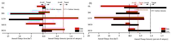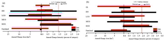 Category level intensity analysis for (a) 1984–2007; (b) 2008–2018.