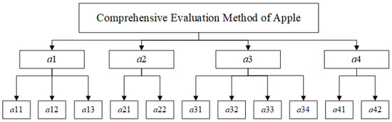 Then, we classified the sub-indicators and built the data frame. More specifically, a11 is the single fruit weight (SFW), a12 is the fruit number per plant (FNP), a13 is the apple yield (Y), a21 is the fruit shape index (FSI), a22 is the fruit firmness (FF), a31 is the total soluble solids (TSS), a32 is the organic acids (OA), a33 is the soluble sugar content (SSC), a34 is the sugar-acid ratio (SAR), a41 is the irrigation water use efficiency (IWUE), and a42 is the partial factor productivity of applied N (PFPN).