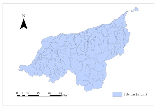 To not only meet the requirements of vertical zone simulation and analysis, but to also avoid excessive calculation burden, the 10,336 km2 area of the Xiaoqinghe River Basin was divided into 123 sub-basins with topological relations, which were then sub-divided into 1244 basic calculation units, according to the contour zone division rules of WEP. The sub-basin unit division of the Xiaoqinghe River basin is shown in Figure 5.