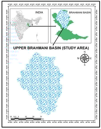 Map of the study area with localization of the Upper Brahmani Basin within the India map.