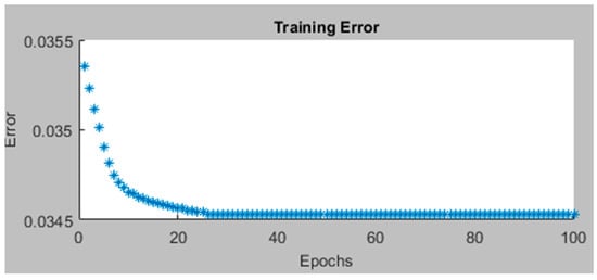 Once the grid partition technique was applied, 23 membership functions were identified. Altogether, 100 epochs were found to be sufficient for obtaining a constant error value (Figure 5).