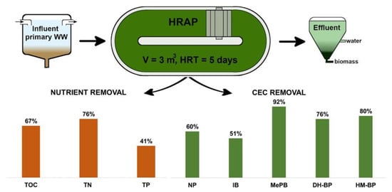 Performance of high-rate algal ponds (HARP) for the treatment of municipal wastewater. Adapted from the work of David Škufca et al. [82]. Reused under the Creative Commons license.