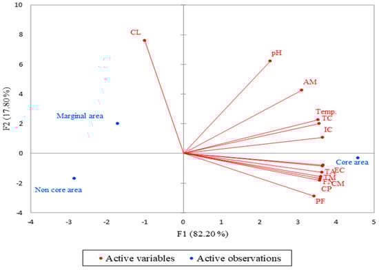 Figure 7. A principal component analysis plot presenting the correlations among different study parameters in different regions.