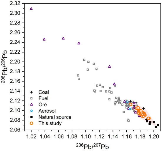 The comparison of Pb isotopes from the MLRHR with different sources, including Chinese ore, coal, fuel, aerosols and natural sediments [14].