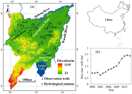(a) Overview of Sanjiang Plain; (b) rice area change.