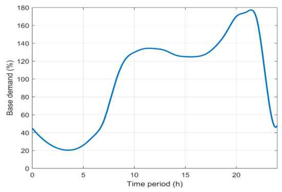 Nevertheless, DDA models simulate system behavior accurately if the system rarely enters an abnormal condition, which is clearly the case with well-designed water networks. Consequently, the majority of modern hydraulic simulation applications are based on DDA. Pressure-Driven Analysis (PDA) is engaged only in “abnormal” conditions scenarios. Then, water demand is not only a function of time, but also a function of pressure [39,40,41]. For a WDS model to be realistic it should be able to accommodate both pressure independent and pressure controlled demand, which is the case with EPANET as it enables the user to run both a DDA and PDA simulation depending on network conditions. In this paper, network behavior during regular operating conditions is being assessed, and hence, the typical DDA model is adopted.