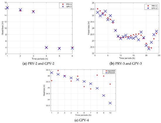 - Head and pressure values of the upstream and downstream nodes of each PRV to determine the working head of GPV (head loss curve) for each time period;
