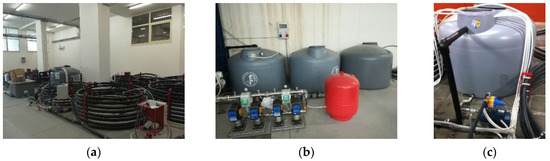 Four polyethene tanks supply the network, three hydraulically connected upstream of the pumping system, and one centrally positioned to the network. The collected flows are conveyed to the user nodes, which feed the other three via a recirculation pump. Overall, the tanks can store up to 8 m3 of water (Figure 2). The pumping system, which consists of four vertical multistage centrifugal electric pumps and an air vessel that allows pressure stabilisation, behaves like a constant load tank, keeping the pressure constant and equal to a pre-set value between 1 and 6 bar with a tolerance of 0.05 bar; the pumping system varies the speed of the pumps.