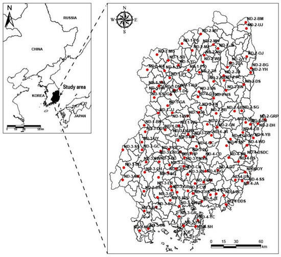 - Lee, J.H.; Jeon, S.W.; Lee, M.J.; Hong, H.J. Coupled Model Development between Groundwater Recharge Rate Quantity and Climate Change in River Watershed II; Korea Environment Institute: Sejong City, Republic of Korea, 2010; 10-02-97(5); 149p. [Google Scholar]