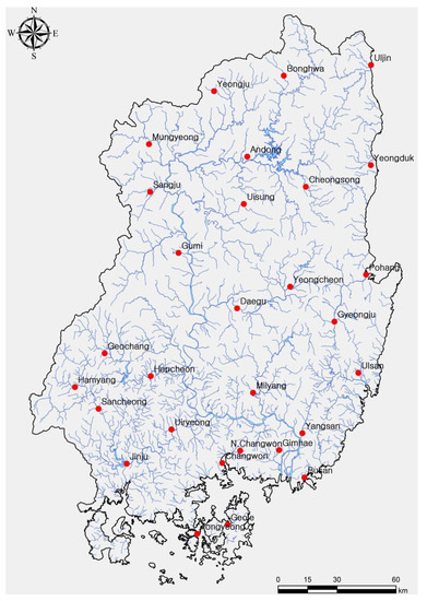 - Keem, M.; Ko, I.; Kim, S. An analysis of the effect of climate change on Nakdong River flow condition using CGCM’s future climate information. J. Korean Soc. Water Qual. 2009, 25, 863–871. [Google Scholar]