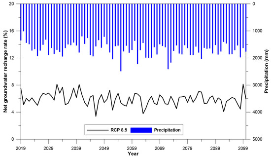 4.2. Net Groundwater Recharge Rate under the Climate Change Scenarios