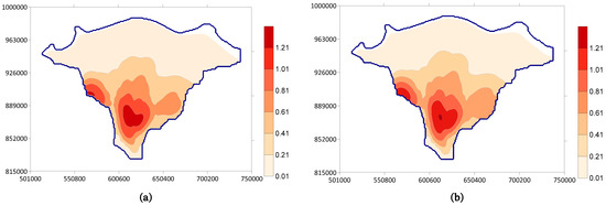 Figure 8a–c present the distribution of groundwater heads difference in the ND for the three predictive periods until the years 2030, 2050, and 2070. The results showed that increasing the ET will decrease the aquifer recharge and increase the groundwater head difference (GWHD).