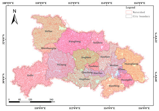 According to statistics, since the founding of New China, a total of 1544 flash flood disasters have occurred in 75 flash flood disaster prevention counties in the province, causing 6763 deaths, 448 missing, 1.91 million houses damaged, and direct economic losses of RMB 39.5 billion. According to the Flash Flood Disasters Investigation and Evaluation results, the area of flash flood disaster prevention and control in Hubei Province is 126,700 km2, involving 13 cities, 75 counties, and 795 townships in the whole province. Figure 2 shows the mountainous and riverside villages most vulnerable to flash floods. Some of the villages have suffered one or more flash floods during the period from 1949 to 2015. These villages are the key targets for the prevention of flash floods, and the investigation and evaluation work were carried out from 2013 to 2015.