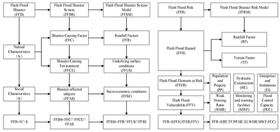 According to the theory of natural disaster systems, nature (N) and society (S) are the essential characteristics of the flash flood disaster system [23], so a flash flood disaster (FFD) can be defined as FFD = N∩S.