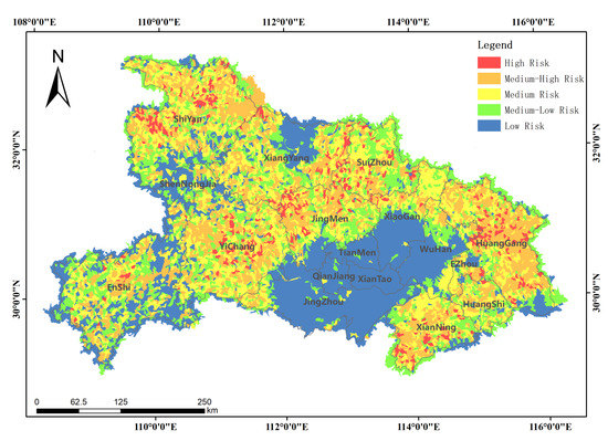 Figure 9. Risk Distribution of Flash Floods in Hubei Province.