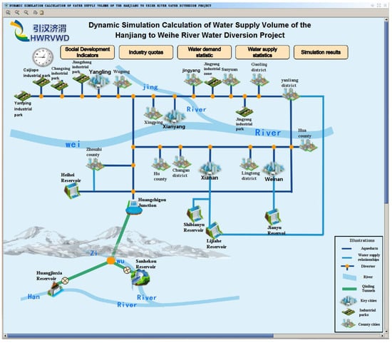 Many studies have been conducted on the issue of water-resource allocation and supply since the planning and design stage of the HWWD Project. Xiao and Kong established an allocation model and solved the issue using optimization algorithms, which provided some guidance for the project’s operation and scheduling [,]. Hui analyzed and calculated the water-supply volume for the HWWD Project and obtained a result for some typical scenarios []. Lei et al. analyzed different risk profiles, assessments, and methods of control by establishing the discharge system-failure risk-calculation theory of the Sanhekou Reservoir, which is considerable for making improvements to project management []. The studies described above show that many researchers remain at a macroscopic and theoretical perspective, which focuses on the optimization dispatch and operation model, and emphasize an optimal solution under a few typical scenarios. However, this project will face different and complex operation situations that are far different from the generalization of one or several optimal operation situations. Therefore, those studies have a weak effect in guiding the operation and dispatch of the HWWD Project.