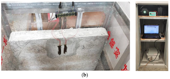 The ice–concrete collision test system was used to complete determination of strain in the collision zone of the tunnel lining and verify the simulation results. As shown in Figure 3, the ice–concrete collision test set-up mainly consisted of the following equipment.