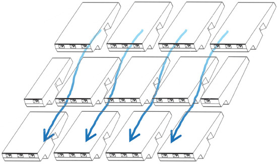 Scheme of the placement of WSB in rows and the creation of staggered longitudinal joints by using half-WSB. The arrows represent the flow of water.
