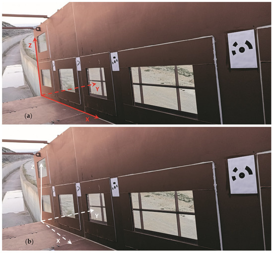 Two coordinate systems (one relative to the chute and other absolute, relative to true vertical) were used during the research work (Figure 12). The movements of the blocks were registered in the system relative to the chute. The coordinates of the markers are reflected in Table 2.