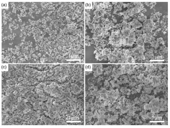 The crystal structure of the samples was examined by X-ray diffraction (XRD) (SmartLab, Tokyo, Japan) using Cu Kα radiation (λ = 0.1541 nm) at 40 kV and 40 mA. The microscopic morphology of the samples was observed by scanning electron microscopy (SEM) (Nano SEM450, FEI Co., Ltd, Hillsboro, OR, USA) after spraying the gold. The functional groups of the samples were characterized using a Fourier-transform infrared (FT-IR) spectrophotometer (Bruker-TENSOR II) (Bruker Co., Ltd, Billerica, MA, USA) at a scanning range between 4000 and 400 cm−1. The adsorption–desorption isotherm and specific surface area of the samples were measured by a Quantachrome autosorb-iQ2 analyzer (autosorb IQ2, Quantachrome, Boynton Beach, FL, USA). The microchemical composition and content of the samples were examined by X-ray fluorescence (XRF) (Rigaku, ZSX Primus Ⅱ, Osaka, Japan). The particle size distribution was measured by a laser particle size meter (SURPASS3, Anton Paar GmbH, Graz, Austria).
