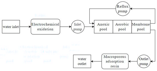 Electrochemical oxidation technology directly decomposes organic matter through anodic reactions or generates hydroxyl radicals through anodic reactions. The results show that high-salinity wastewater has high electrical conductivity because it contains a large number of anions and cations that can promote the removal of organics by electrochemical oxidation [42]. Darvishmotevalli et al. [43] used response surface methodology (RSM) to determine the best parameters for the removal of COD and TOC in saline effluents by electrochemical oxidation. Under optimal conditions, the removal rates of COD and TOC in the effluent were 91.78% and 68.49%, respectively. However, due to plate loss and other problems, the electrochemical oxidation method has poor treatment stability and high energy consumption, and there is still some distance to realizing industrialization.