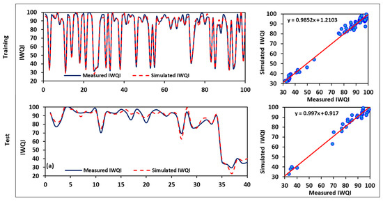 SVM is a well-known ML approach that is dependent on mathematical learning theory. It is useful for classifying large amounts of data, identifying features, and performing regression analyses [62]. From the datasets (x, y) provided, SVR sought to create functions where x is the input parameter and y is the output parameter of the “IWQIs”.