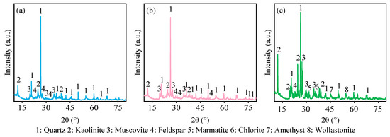Mineral composition of the roof samples: (a) MS14; (b) MS15; (c) MCS16.
