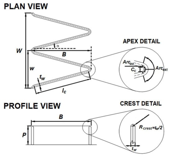Geometric parameters of a labyrinth type weir (Mattos-Villarroel et al., 2021 [1]).