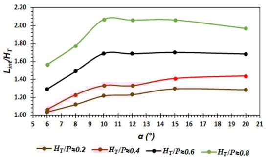Based on the quantity of movement, Osuna 2000 [36] analyzed the hydraulic behavior of a weir, located inside a channel and oblique to the upstream flow direction, and proposed an equation that allows for the calculation of the flow per unit length of the weir. The results indicated that the direction of flow at the outlet of the weir depends on the ratio of the thickness of the nappe contracted over the weir and the height of free-surface water, upstream from a point sufficiently far from the weir. In the last decade, Granell and Toledo (2010) [37] adapted the mathematical model of Osuna (2000) [37] to labyrinth weirs in order to obtain the nappe’s collision length.