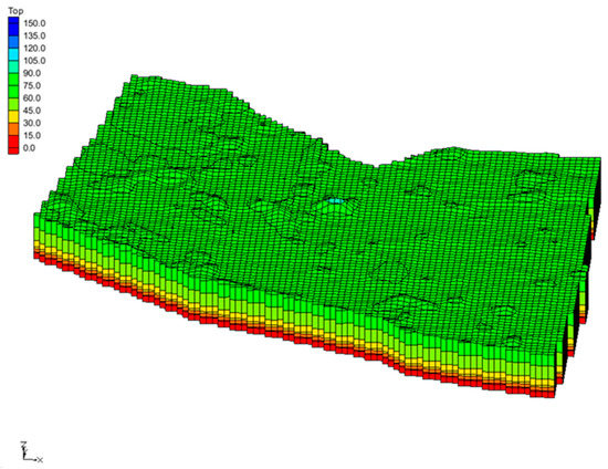 Three-dimensional structural model of the simulation area (vertical exaggeration 5×).