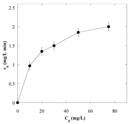 Initial AO10 degradation rate (r0) vs. its initial concentration C0, under the same conditions of Figure 8.
