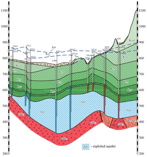 The geological and hydrogeological profile of the Kislovodsk deposit.