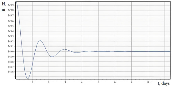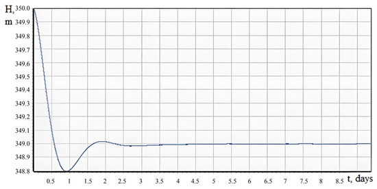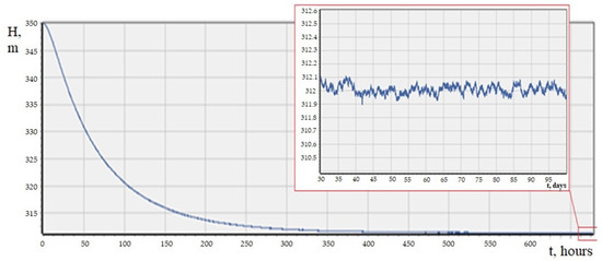 The head deviation in the steady state reaches 0.12 m, which can lead to the penetration of sewage into the exploited aquifer. The problem is to control the hydrodynamic process and reduce the effect of random disturbances on maintaining the head of the exploited reservoir at a given level in order to preserve the reserves and quality of mineral water.