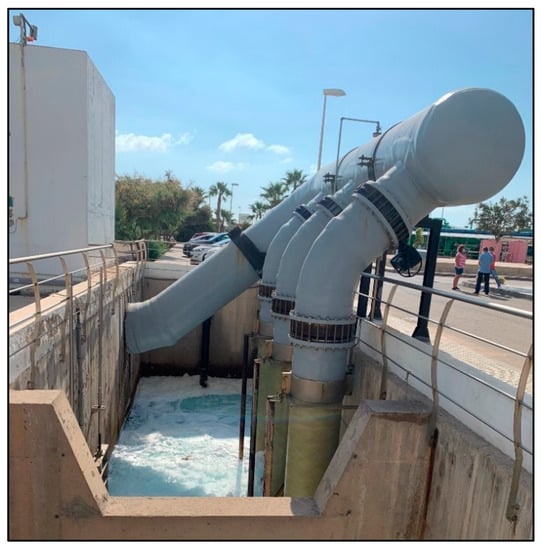 The San Pedro del Pinatar SWRO plants located on the southeast of the Spanish Mediterranean coast began operation in 2006 with a maximum installed capacity of 130,000 m3, which represented a maximum brine discharge production of 159,000 m3. They are located near Posidonia oceanica seagrass meadows that are protected by national and European regulations. The brine discharged from both plants is disposed into the sea through a 4790 m outfall to ensure that the discharge point is situated below the lower limit of the Posidonia oceanica meadow [17,18,19].