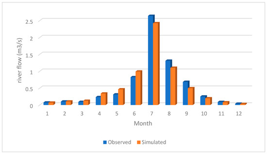 Figure 9 and Figure 10 show observed and simulated river discharge for the Pole-Do-Ab hydrometric station, which is located near the watershed outlet, for calibration and validation. Calculated error metrics for calibration and validation show that the capability of the model for simulating river discharge in the Shazand watershed is acceptable (Table 6 and Table 7).