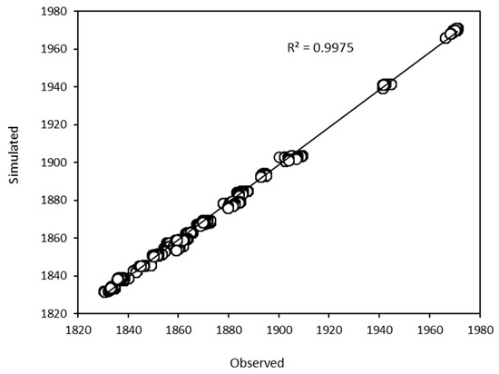 Table 4 shows the RMSE for 17 piezometers in the transient state and good performance of the model in this case as well. R2 and RMSE were 0.997 and 1.98 m, respectively, which indicate acceptable errors (Figure 8).
