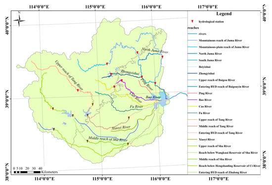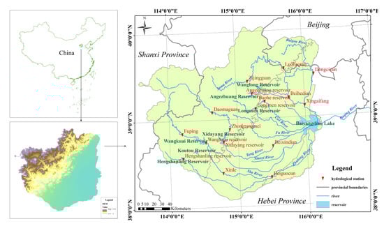 The study area is the Baiyangdian Basin (BYDB), which is the middle and upper reaches of the Daqing River Basin, that is, Baiyangdian Lake (BYD) and its upper basins. The Xiongan New Area is located around BYD in the lower reaches of the BYDB. It is the most important strategic area in China after the Shenzhen Special Economic Zone and the Pudong New Area. It can be called “the Millennium Plan and the National Event”, and an ecological city with blue and green interweaving, fresh and bright, with harmony between water and city should be built. BYD and inflow rivers in the BYDB are of great significance to support the green development and ecological restoration of the Xiongan New Area. However, in the past few years, the runoff in rivers has decreased sharply, the water level in BYD is unstable, and the ecological water demand cannot be guaranteed. Under the new development requirements, there is no scientific basis for how to restore the ecology of rivers and ensure their ecological needs. The value of this research is to finely calculate the ecological water demand of rivers under multi-objective and multi-period to provide strong support for their ecological restoration. In addition, most rivers face problems such as a sharp decline of runoff and the drying up of the rivers, and there is an urgent need to restore ecology in northern China. This study also has insights and reference significance for other regions.